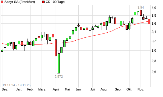 Mit dem Rücksetzer auf 3,60 EUR hat die Sacyr Vallehermoso S.A. Acciones Port.-Aktie am 18.11.2025 die 100-Tage-Linie nach unten gekreuzt.