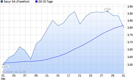 Mit dem Rücksetzer auf 3,80 EUR hat die Sacyr Vallehermoso S.A. Acciones Port.-Aktie am 31.10.2025 die 20-Tage-Linie nach unten gekreuzt.