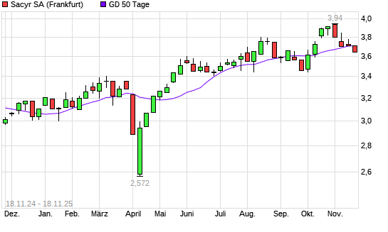 Mit dem Rücksetzer auf 3,67 EUR hat die Sacyr Vallehermoso S.A. Acciones Port.-Aktie am 17.11.2025 die 50-Tage-Linie nach unten gekreuzt.