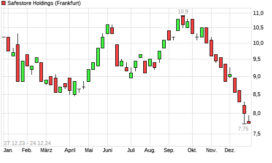 Mit dem Rücksetzer auf 7,75 EUR hat die Safestore Holdings-Aktie (ISIN GB00B1N7Z094) am 23.12.2024 ein neues 12-Monats-Tief erreicht und damit den Kurs vom 19.12.2024 eingestellt.