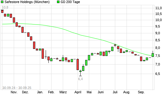 Mit dem Anstieg auf 7,45 EUR hat die Safestore Holdings-Aktie am 29.09.2025 die 200-Tage-Linie nach oben gekreuzt.