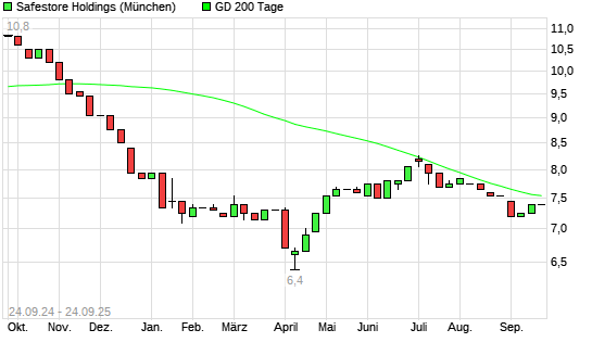 Mit dem Rücksetzer auf 7,40 EUR hat die Safestore Holdings-Aktie am 23.09.2025 die 200-Tage-Linie nach unten gekreuzt.