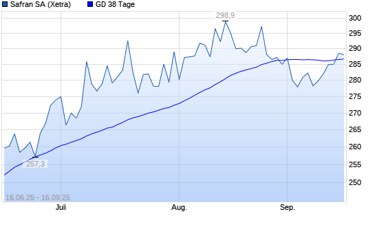 Mit dem Anstieg auf 288,40 EUR hat die Safran-Aktie am 15.09.2025 die 38-Tage-Linie nach oben gekreuzt.