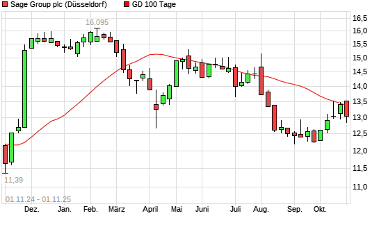 Mit dem Anstieg auf 13,57 EUR hat die Sage Group-Aktie am 31.10.2025 die 100-Tage-Linie nach oben gekreuzt.