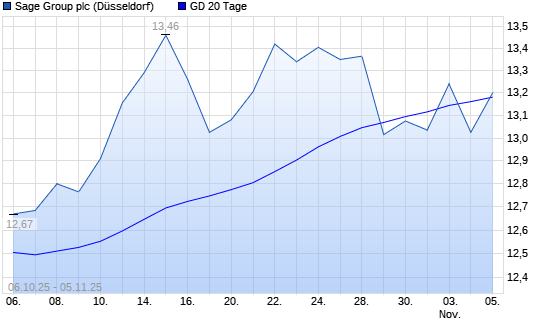 Mit dem Anstieg auf 13,06 EUR hat die Sage Group-Aktie am 04.11.2025 die 20-Tage-Linie nach oben gekreuzt.