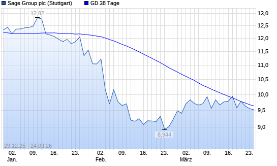 Mit dem Rücksetzer auf 9,52 EUR hat die Sage Group-Aktie am 23.03.2026 die 38-Tage-Linie nach unten gekreuzt.