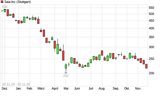 Mit dem Rücksetzer auf 212,00 EUR hat die Saia-Aktie (ISIN US78709Y1055) am 21.11.2025 ein neues 6-Monats-Tief erreicht und damit den Kurs vom 20.11.2025 eingestellt.