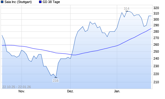Mit dem Anstieg auf 286,00 EUR hat die Saia-Aktie am 21.01.2026 die 38-Tage-Linie nach oben gekreuzt.