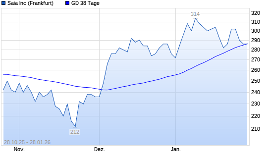 Mit dem Rücksetzer auf 286,00 EUR hat die Saia-Aktie am 27.01.2026 die 38-Tage-Linie nach unten gekreuzt.