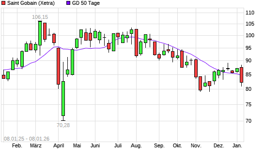 Mit dem Anstieg auf 84,60 EUR hat die Saint Gobain-Aktie am 07.01.2026 die 50-Tage-Linie nach oben gekreuzt.