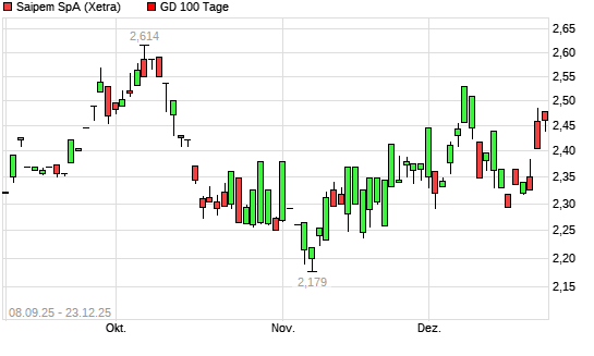 Mit dem Anstieg auf 2,47 EUR hat die Saipem-Aktie am 22.12.2025 die 100-Tage-Linie nach oben gekreuzt.