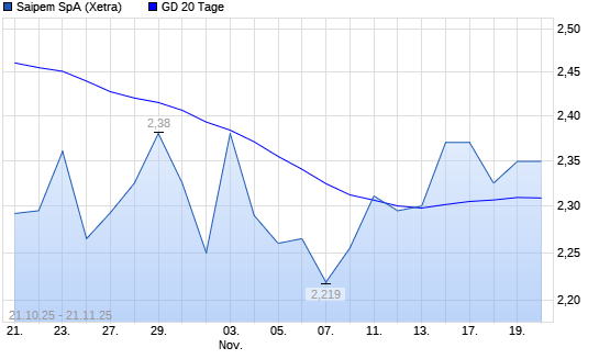 Mit dem Anstieg auf 2,28 EUR hat die Saipem-Aktie am 20.11.2025 die 20-Tage-Linie nach oben gekreuzt.