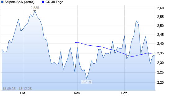 Mit dem Anstieg auf 2,32 EUR hat die Saipem-Aktie am 17.12.2025 die 38-Tage-Linie nach oben gekreuzt.