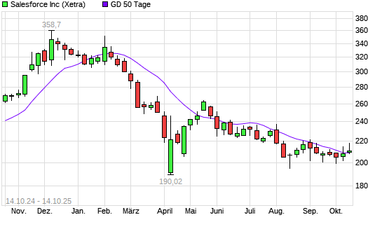 Mit dem Anstieg auf 215,45 EUR hat die Salesforce-Aktie am 13.10.2025 die 50-Tage-Linie nach oben gekreuzt.