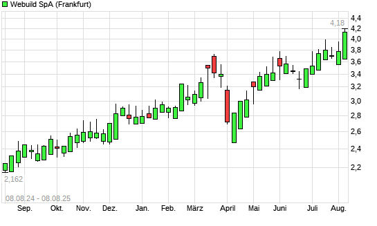 Mit dem Anstieg auf 4,17 EUR hat die Salini Impregilo-Aktie (ISIN IT0003865570) am 07.08.2025 ein neues 5-Jahres-Hoch erreicht und damit den Kurs vom 05.08.2025 eingestellt.