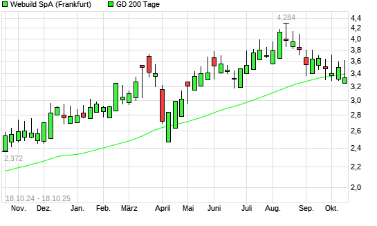Mit dem Rücksetzer auf 3,40 EUR hat die Salini Impregilo-Aktie am 17.10.2025 die 200-Tage-Linie nach unten gekreuzt.