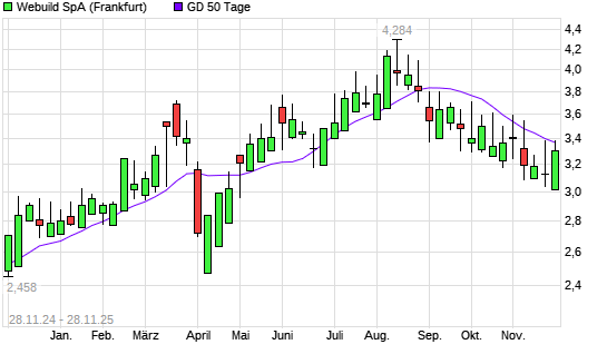 Mit dem Rücksetzer auf 3,40 EUR hat die Salini Impregilo-Aktie am 27.11.2025 die 50-Tage-Linie nach unten gekreuzt.