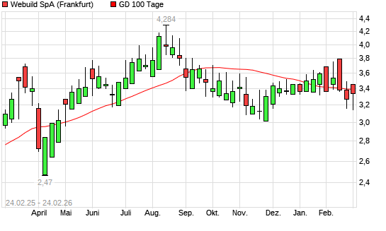 Mit dem Rücksetzer auf 3,30 EUR hat die Salini Impregilo-Aktie am 23.02.2026 die 100-Tage-Linie nach unten gekreuzt.Die Salini Impregilo-Aktie befindet sich seit dem 04.11.2025 ...weiterlesen
