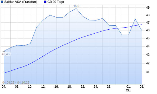 Mit dem Rücksetzer auf 46,00 EUR hat die Salmar ASA-Aktie am 03.10.2025 die 20-Tage-Linie nach unten gekreuzt.