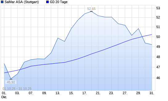 Mit dem Rücksetzer auf 49,34 EUR hat die Salmar ASA-Aktie am 30.10.2025 die 20-Tage-Linie nach unten gekreuzt.