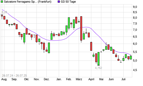 Mit dem Rücksetzer auf 5,26 EUR hat die Salvatore Ferragamo-Aktie am 25.07.2025 die 50-Tage-Linie nach unten gekreuzt.