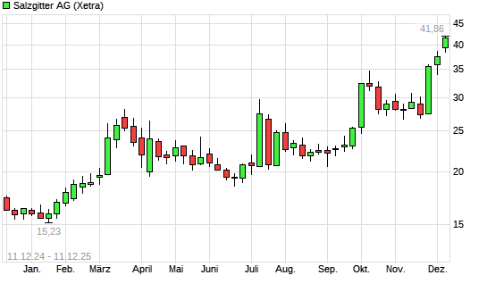 Mit dem Anstieg auf 40,26 EUR hat die Salzgitter-Aktie (ISIN DE0006202005) am 10.12.2025 ein neues 12-Monats-Hoch erreicht und damit den Kurs vom 09.12.2025 eingestellt.