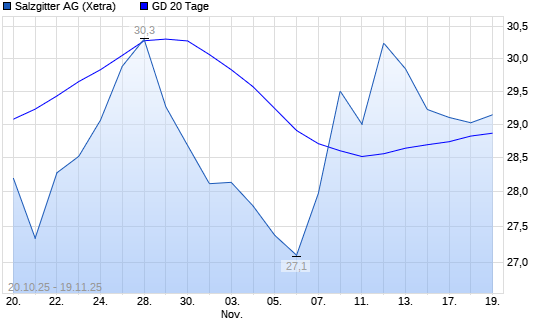 Mit dem Rücksetzer auf 28,56 EUR hat die Salzgitter-Aktie am 18.11.2025 die 20-Tage-Linie nach unten gekreuzt.