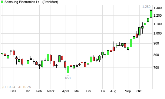 Mit dem Anstieg auf 1.240,00 EUR hat die Samsung-Aktie (ISIN US7960502018) am 30.10.2025 ein neues 3-Jahres-Hoch erreicht und damit den Kurs vom 29.10.2025 eingestellt.