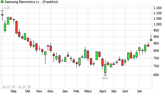 Mit dem Anstieg auf 902,00 EUR hat die Samsung-Aktie (ISIN US7960502018) am 30.07.2025 ein neues 6-Monats-Hoch erreicht und damit den Kurs vom 29.07.2025 eingestellt.