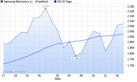Mit dem Anstieg auf 2.060,00 EUR hat die Samsung-Aktie am 16.03.2026 die 20-Tage-Linie nach oben gekreuzt.