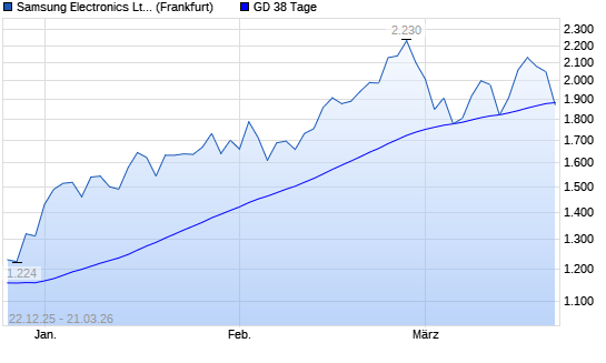 Mit dem Rücksetzer auf 1.872,00 EUR hat die Samsung-Aktie am 20.03.2026 die 38-Tage-Linie nach unten gekreuzt.