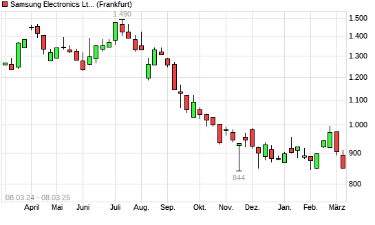 Mit dem Rücksetzer auf 850,00 EUR hat die Samsung Electronics St GDR-Aktie (ISIN US7960508882) am 07.03.2025 ein neues 3-Jahres-Tief erreicht und damit den Kurs vom 03.02.2025 eingestellt.