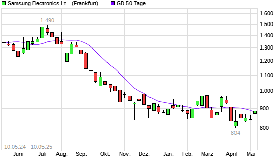 Mit dem Anstieg auf 886,00 EUR hat die Samsung Electronics St GDR-Aktie am 09.05.2025 die 50-Tage-Linie nach oben gekreuzt.