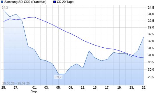 Mit dem Anstieg auf 31,30 EUR hat die Samsung SDI-Aktie am 24.09.2025 die 20-Tage-Linie nach oben gekreuzt.