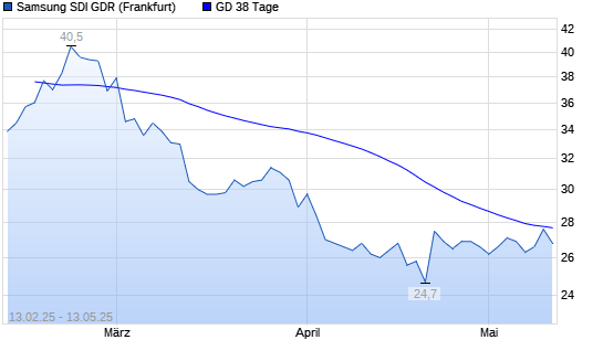 Mit dem Anstieg auf 27,60 EUR hat die Samsung SDI-Aktie am 12.05.2025 die 38-Tage-Linie nach oben gekreuzt.