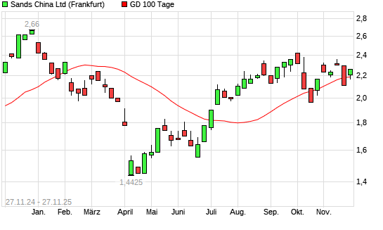 Mit dem Anstieg auf 2,20 EUR hat die Sands China-Aktie am 26.11.2025 die 100-Tage-Linie nach oben gekreuzt.