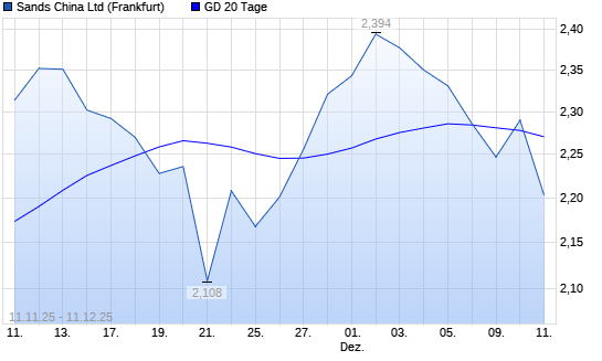 Mit dem Anstieg auf 2,29 EUR hat die Sands China-Aktie am 10.12.2025 die 20-Tage-Linie nach oben gekreuzt.