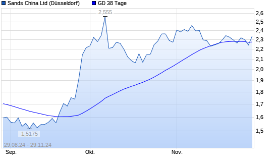 Mit dem Rücksetzer auf 2,23 EUR hat die Sands China-Aktie am 28.11.2024 die 38-Tage-Linie nach unten gekreuzt.
