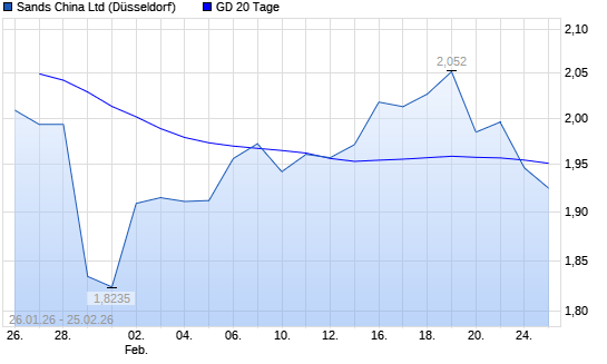 Mit dem Rücksetzer auf 1,94 EUR hat die Sands China-Aktie am 24.02.2026 die 20-Tage-Linie nach unten gekreuzt.Die Sands China-Aktie befindet sich seit dem 16.01.2026 im ...weiterlesen