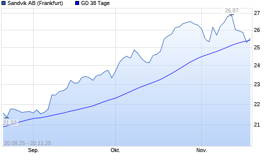 Mit dem Rücksetzer auf 25,28 EUR hat die Sandvik-Aktie am 19.11.2025 die 38-Tage-Linie nach unten gekreuzt.