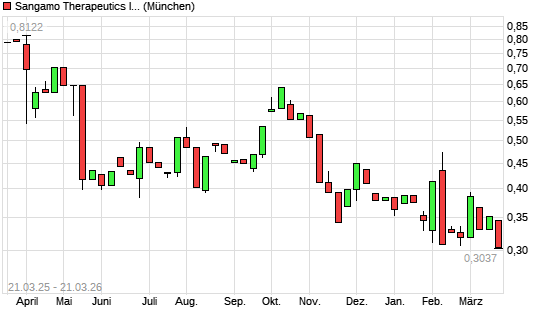 Mit dem Rücksetzer auf 0,23 EUR hat die Sangamo BioSciences-Aktie (ISIN US8006771062) am 20.03.2026 ein neues All-Time-Low erreicht und damit den Kurs vom 13.11.2023 eingestellt.