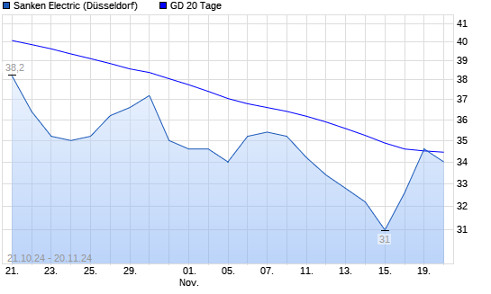 Mit dem Anstieg auf 35,00 EUR hat die Sanken-Aktie am 19.11.2024 die 20-Tage-Linie nach oben gekreuzt.