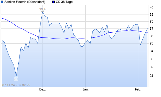 Mit dem Anstieg auf 36,60 EUR hat die Sanken-Aktie am 06.02.2025 die 38-Tage-Linie nach oben gekreuzt.