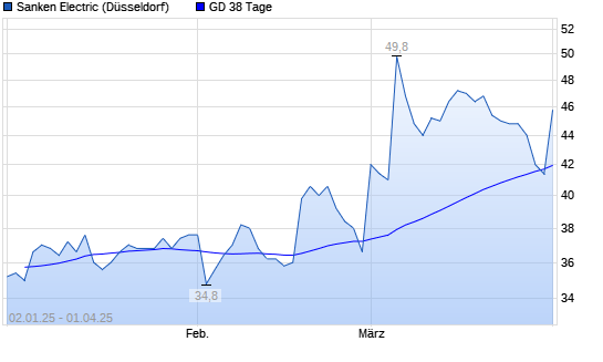 Mit dem Rücksetzer auf 41,60 EUR hat die Sanken-Aktie am 31.03.2025 die 38-Tage-Linie nach unten gekreuzt.