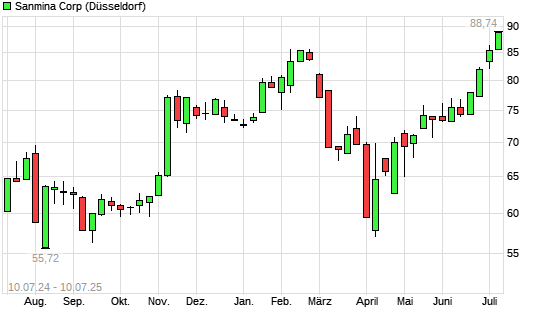 Mit dem Anstieg auf 87,86 EUR hat die Sanmina Corporation-Aktie (ISIN US8010561020) am 09.07.2025 ein neues 10-Jahres-Hoch erreicht und damit den Kurs vom 08.07.2025 eingestellt.