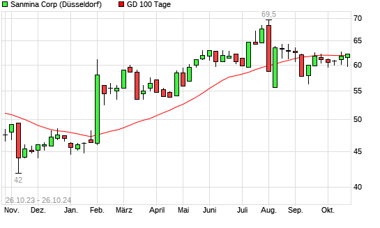 Mit dem Anstieg auf 61,98 EUR hat die Sanmina Corporation-Aktie am 25.10.2024 die 100-Tage-Linie nach oben gekreuzt.