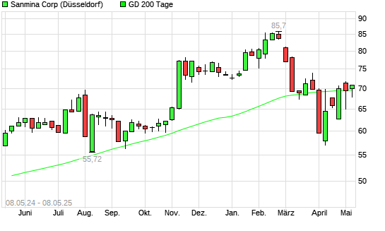 Mit dem Anstieg auf 69,96 EUR hat die Sanmina Corporation-Aktie am 07.05.2025 die 200-Tage-Linie nach oben gekreuzt.