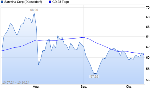 Mit dem Anstieg auf 60,88 EUR hat die Sanmina Corporation-Aktie am 09.10.2024 die 38-Tage-Linie nach oben gekreuzt.