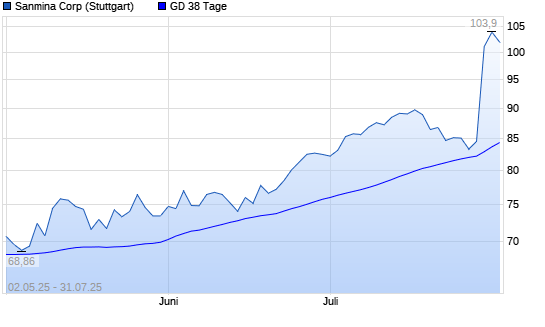 Mit dem Anstieg auf 100,70 EUR hat die Sanmina Corporation-Aktie am 30.07.2025 die 38-Tage-Linie nach oben gekreuzt.