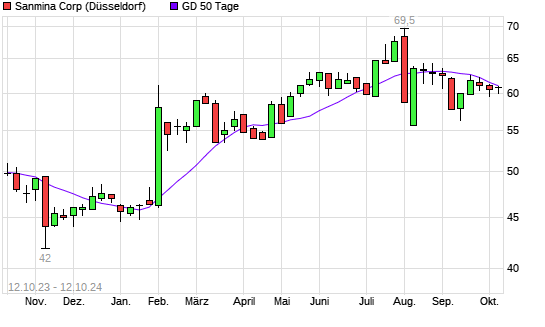 Mit dem Anstieg auf 61,02 EUR hat die Sanmina Corporation-Aktie am 11.10.2024 die 50-Tage-Linie nach oben gekreuzt.